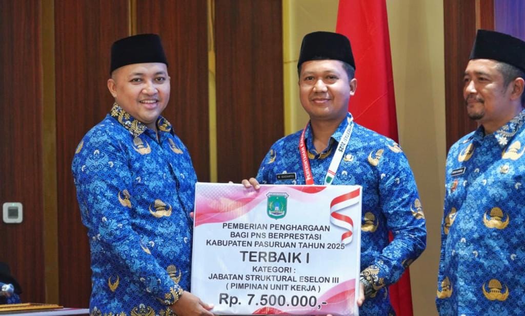 Untuk tahun ini, setidaknya 15 PNS berprestasi yang mendapatkan penghargaan sekaligus menerima apresiasi langsung dari Bupati Pasuruan, Rusdi Sutejo, di sela-sela Tasyakuran HUT KORPRI ke 54 di Auditorium Mpu Sindok Komplek Kantor Bupati Pasuruan, Senin (1/12/2025).