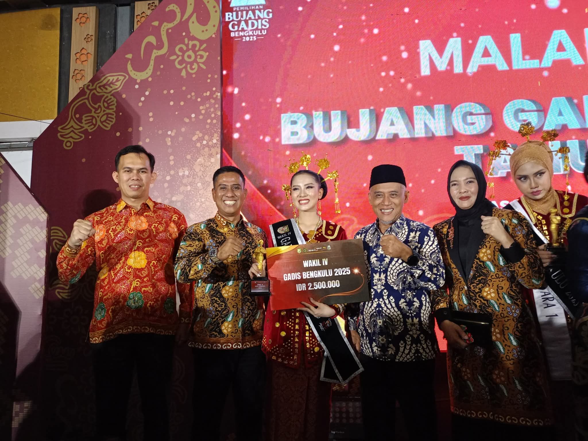 Malam final ini menjadi momen yang membanggakan bagi Kabupaten Bengkulu Utara. Fatiya Maulidya Putri, perwakilan Bengkulu Utara I terpilih sebagai gadis Provinsi Bengkulu, berdampingan dengan Arbie Chandra Guci, perwakilan Seluma I sebagai Bujang Provinsi Bengkulu tahun 2025.