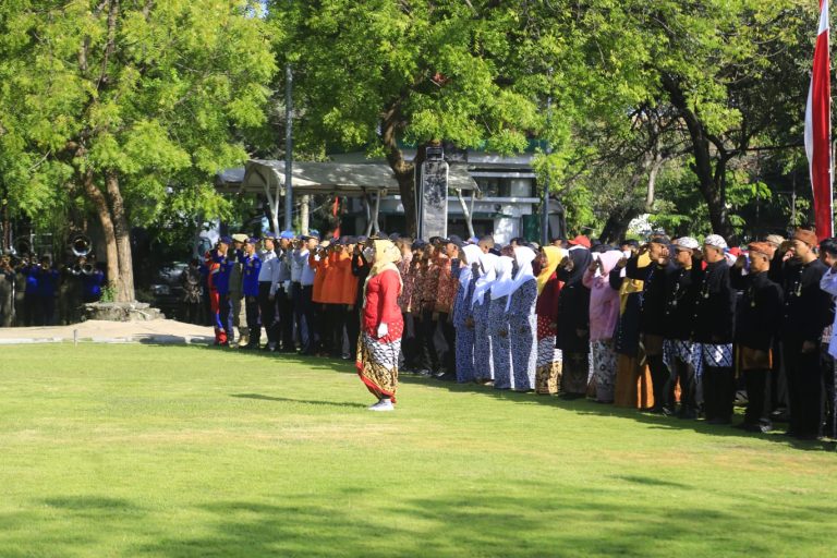 Apel diawali dengan masuknya lambang daerah “Prasaja Ngesti Wibawa” yang dibawa anggota Satpol PP sebagai simbol pengingat perjuangan panjang para leluhur dalam membangun daerah.