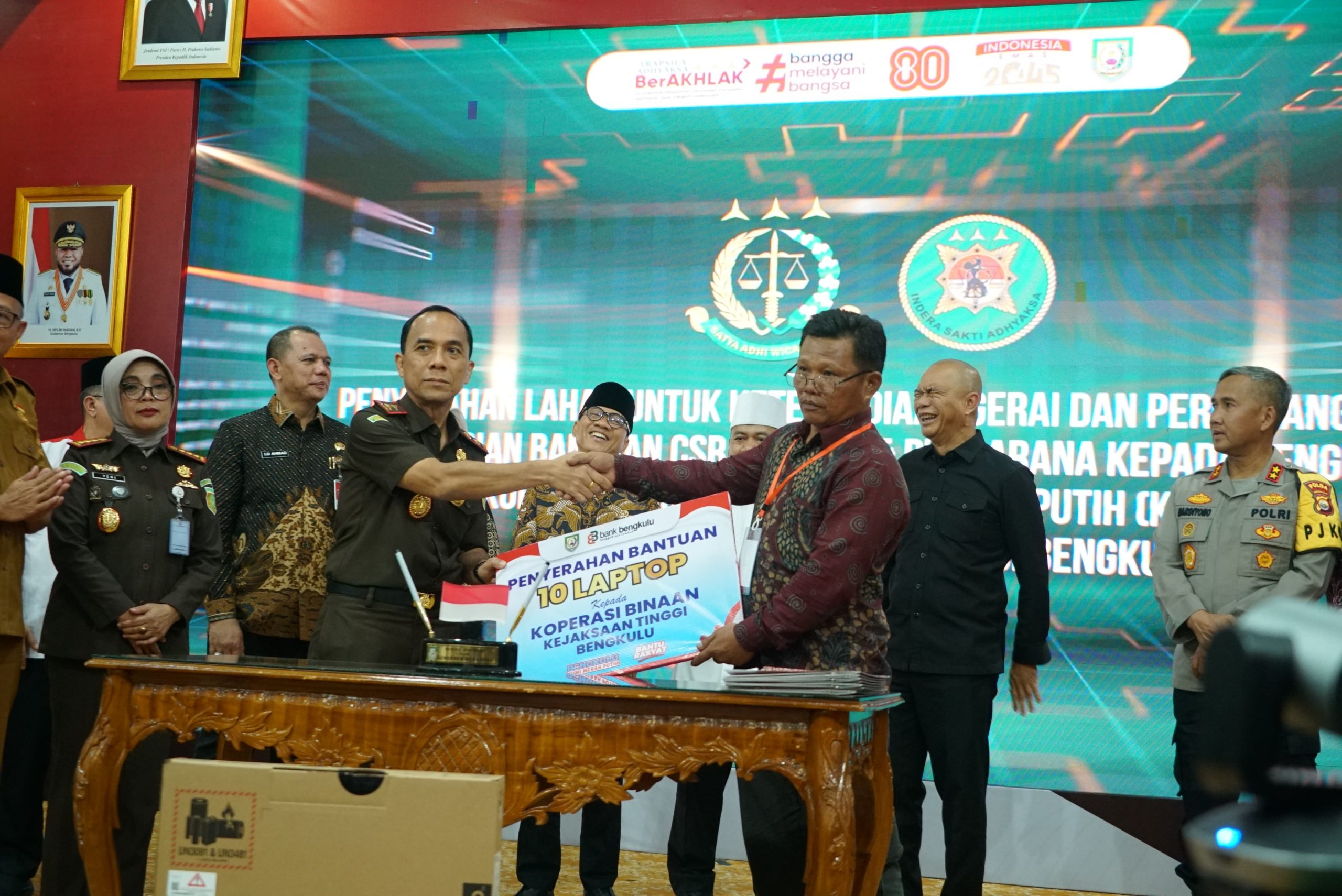 Bengkulu, Narasiberita.co.id.- Peluncuran Program Jaksa Garda Desa, penandatanganan MoU dan PKS antara Kejaksaan Negeri dan para bupati/wali kota se-Provinsi Bengkulu, serta penyerahan lahan untuk penyediaan gerai dan pergudangan Koperasi Merah Putih digelar di Balai Raya Semarak Bengkulu, Senin (17/11/2025).
