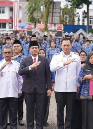 Asahan, Narasiberita.co.id – Bupati Asahan Taufik Zainal Abidin, S.Sos., M.Si bersama Wakil Bupati Rianto, SH., MAP memberikan salam hormat dan apresiasi kepada ratusan petugas kebersihan Dinas Lingkungan Hidup (DLH) Asahan.