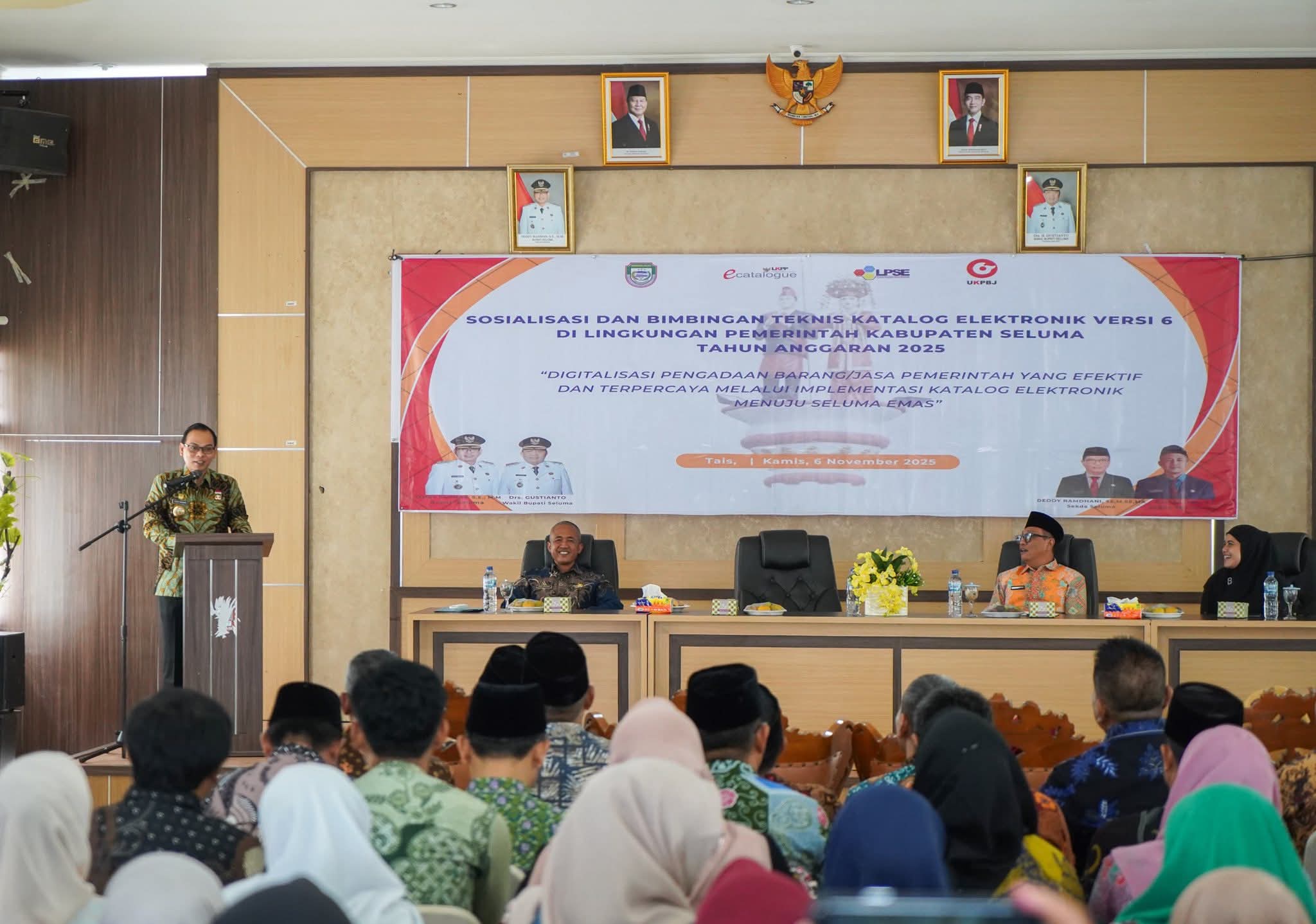 Seluma, Narasiberita.co.id. — Bupati Seluma, Teddy Rahman, SE., M.M., secara resmi membuka kegiatan Sosialisasi dan Bimbingan Teknis (Bimtek) Katalog Versi 6.0 yang digelar di Aula BKD Seluma, Kamis (6/11/20ý25).
