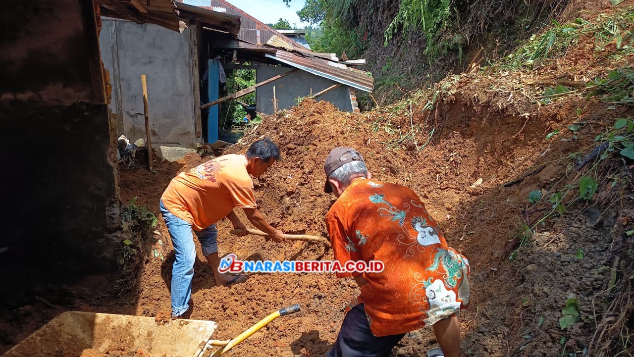 Gotong Royong Lintas Sektor, Aparat dan Warga Bersihkan Rumah Terdampak Banjir dan Longsor di Desa Cawang Lama