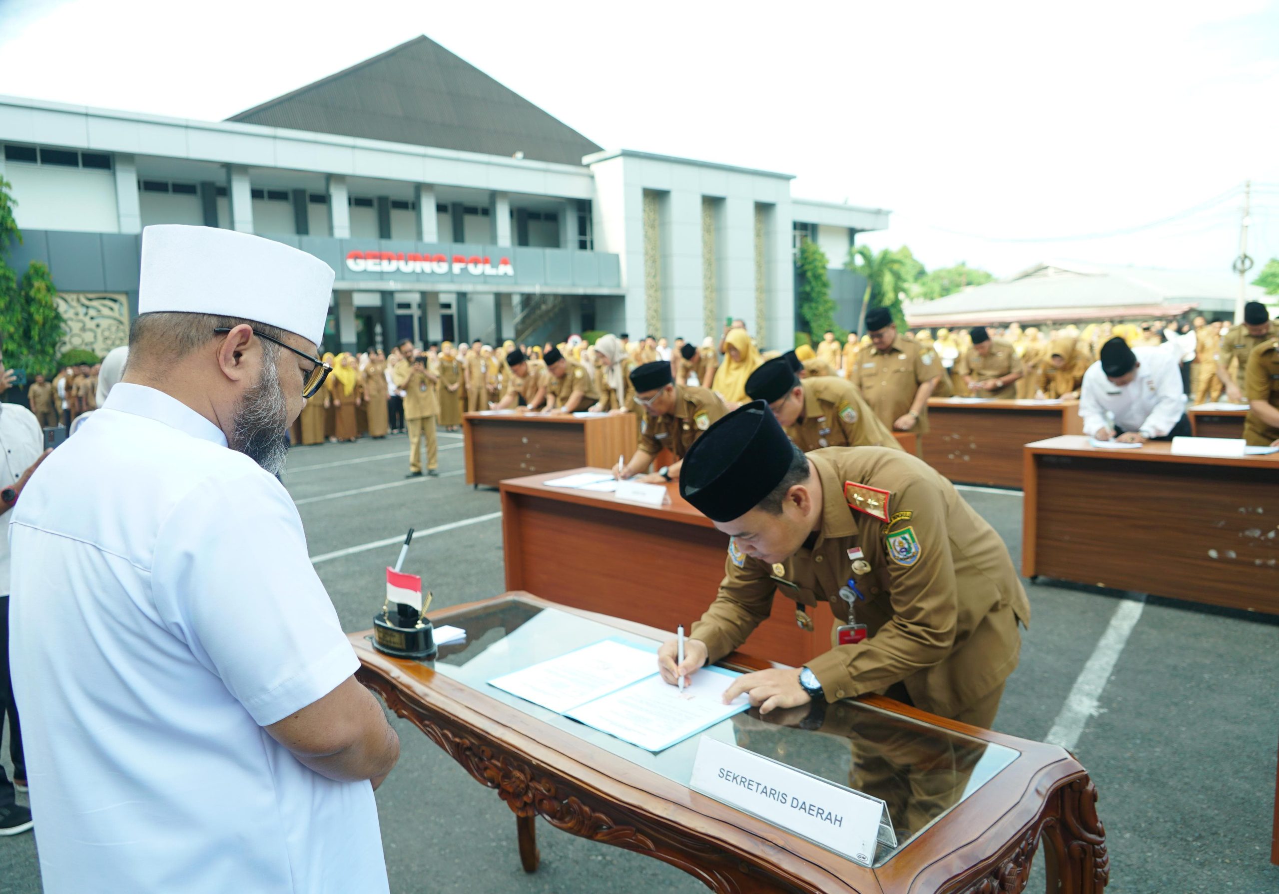 Bengkulu, Narasiberita.co.id.- Aparatur Sipil Negara (ASN) di lingkungan Pemerintah Provinsi Bengkulu mengikuti apel pagi bersama yang sekaligus menjadi momentum penandatanganan Surat Pernyataan Tidak Melakukan Pungutan Liar (Pungli) dan Gratifikasi.
