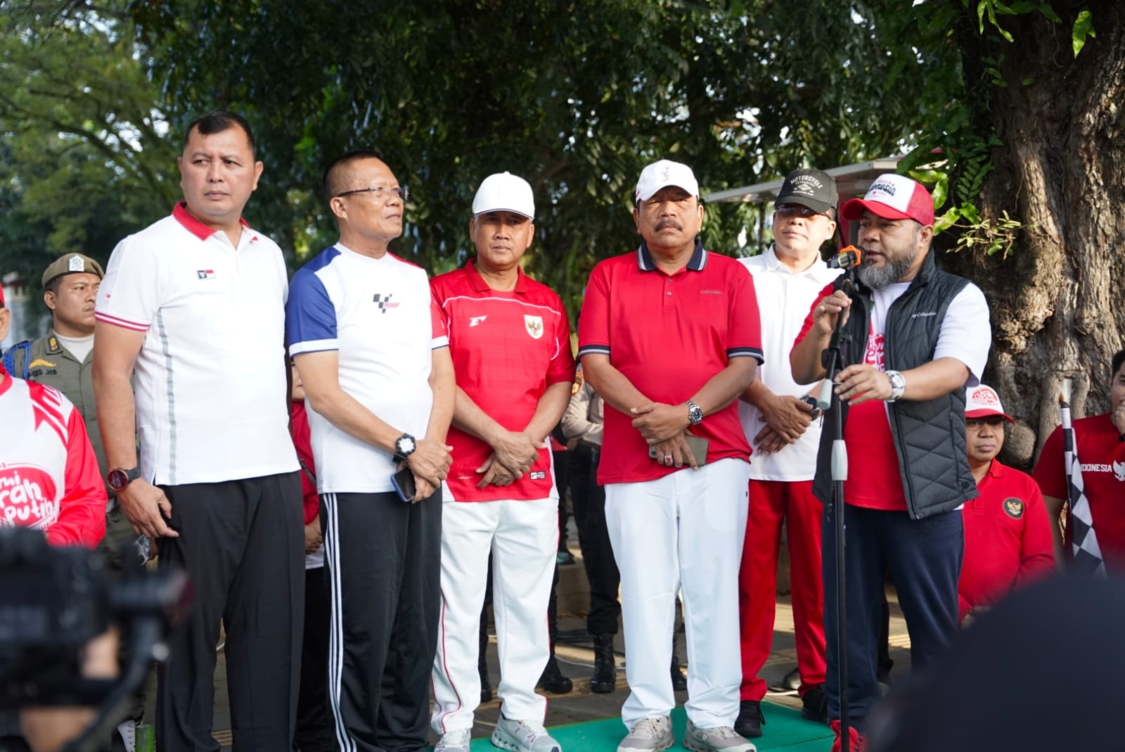 Turut hadir Wakil Gubernur Mian beserta istri, Eko Kurnia Ningsih, jajaran Forkopimda, pegawai di lingkungan Pemda Provinsi, pelajar, serta masyarakat umum. Para peserta kompak mengenakan busana bernuansa merah putih.