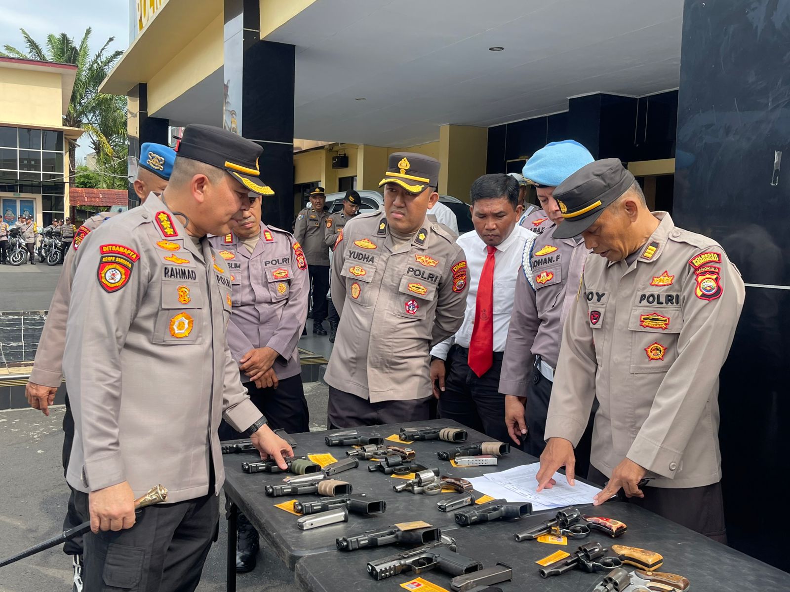 Dalam pengecekan tersebut, tercatat sebanyak 67 pucuk senjata api dinas diperiksa untuk memastikan kondisinya tetap layak pakai serta sesuai dengan prosedur penggunaan yang telah ditetapkan.