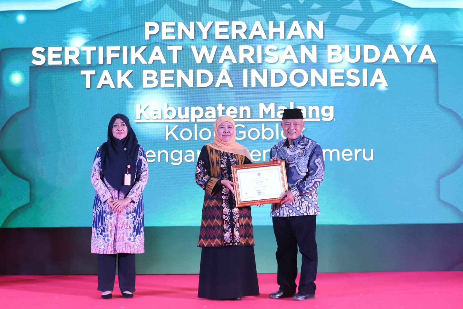 MALANG-Jatim, Narasiberita.co.id- Khazanah budaya Kabupaten Malang kembali mendapat pengakuan di kancah nasional. Bupati Malang, Drs. H. M. Sanusi, M.M., secara simbolis menerima sertifikat penetapan Kolok Goblok dan Bantengan Lereng Semeru sebagai Warisan Budaya Tak Benda (WBTB) Indonesia.