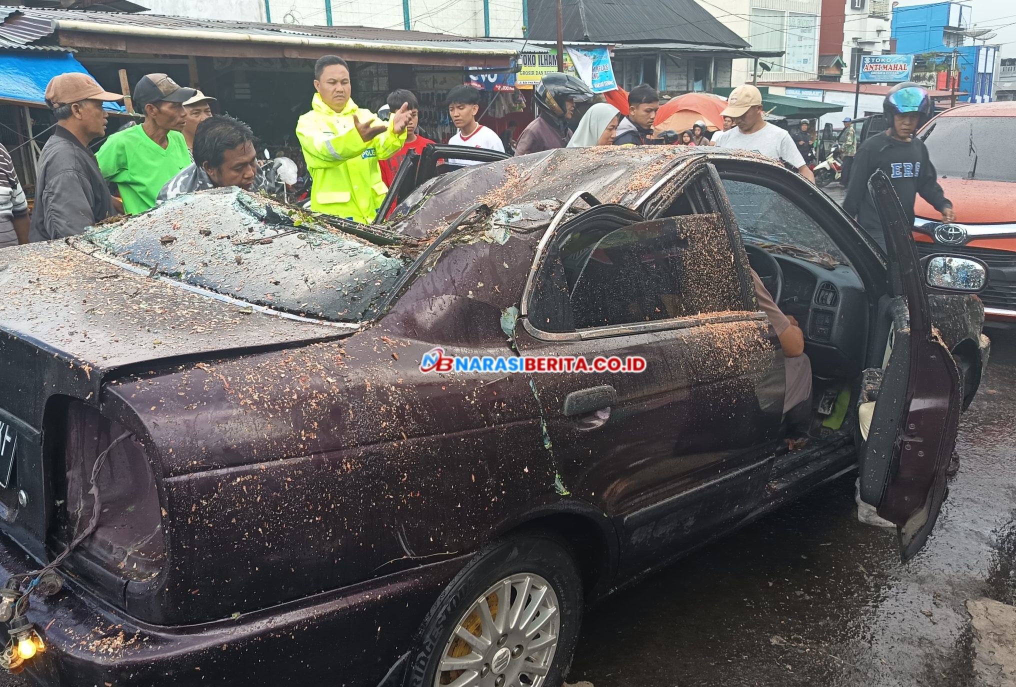 Korban Nyaris Tewas, Mobil Sedan Tertimpa Pohon Tumbang Saat Hujan Angin di Pasar Atas Rejang Lebong