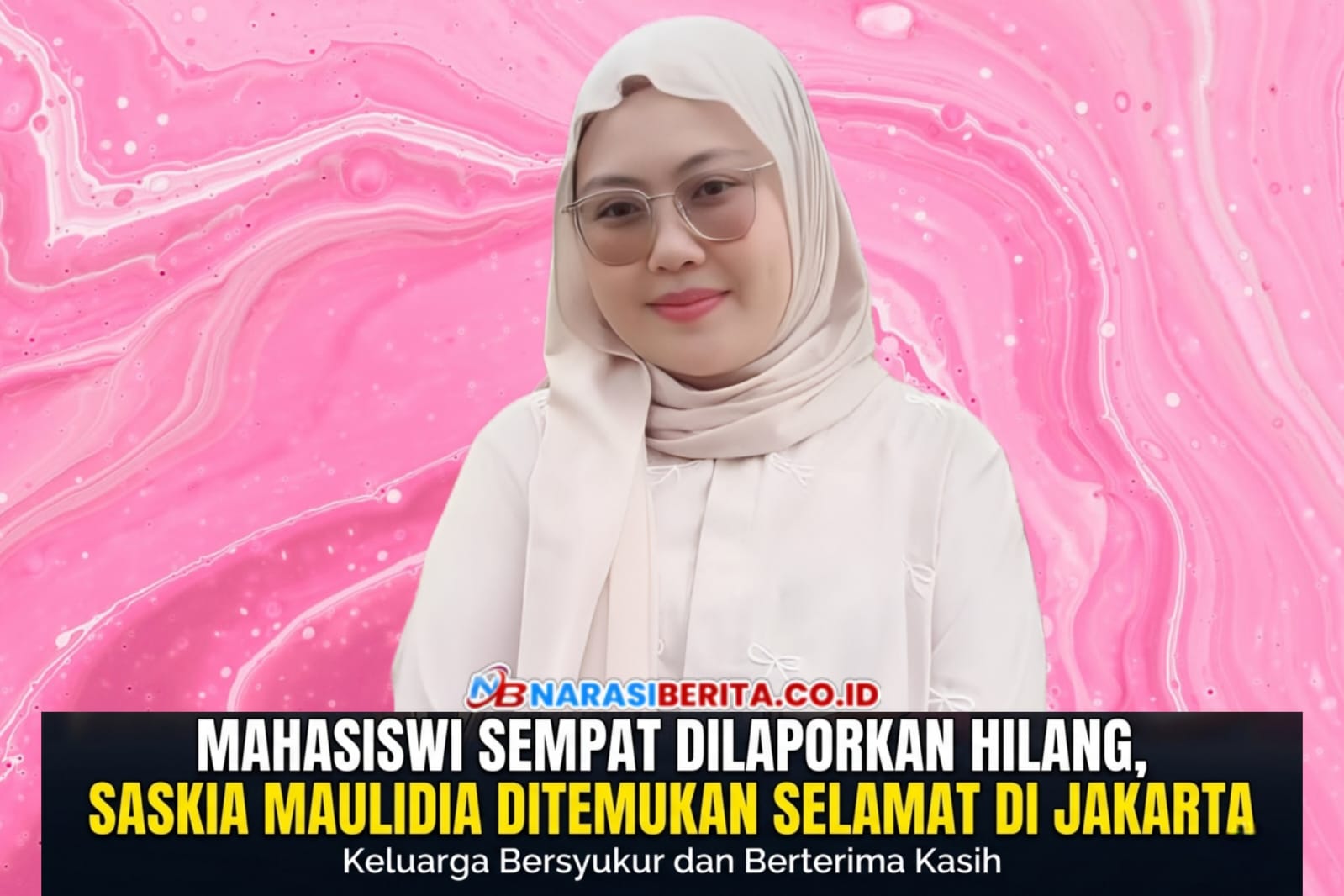 Rejang Lebong, Narasiberita.co.id. – | Kabar baik datang dari keluarga Saskia Maulidia (19), mahasiswi IAIN Curup yang sebelumnya dilaporkan hilang. Saskia kini telah ditemukan dalam kondisi selamat di Jakarta.