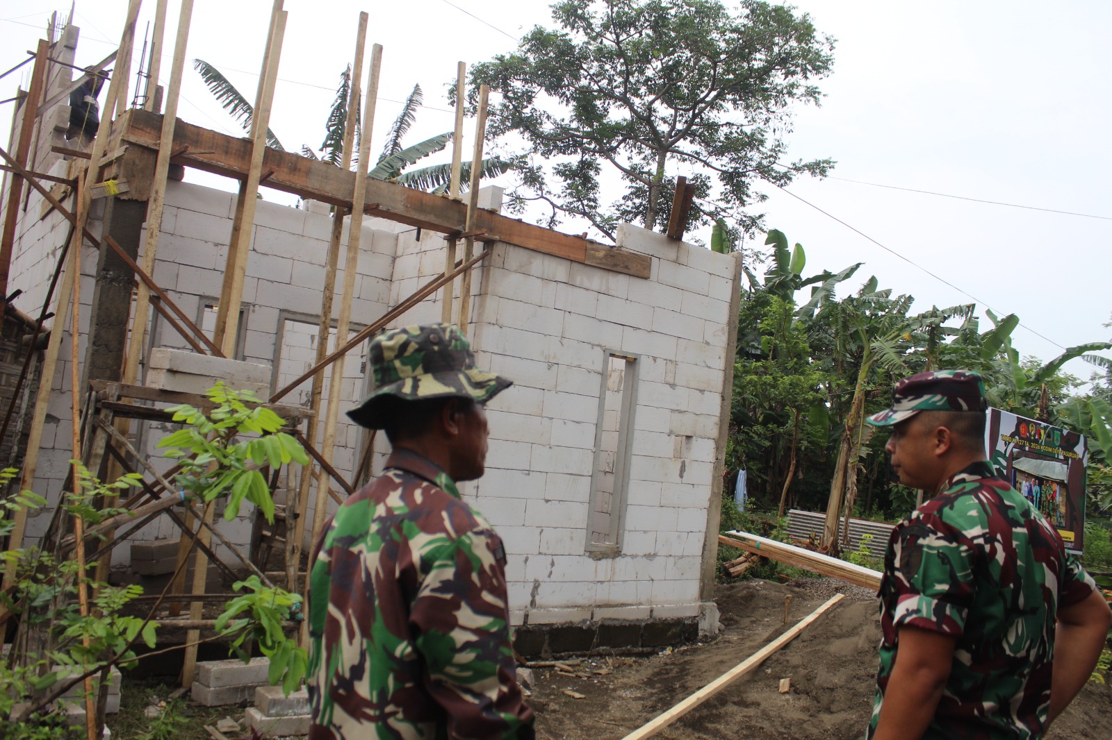 Salah satu titik utama yang ditinjau adalah rehabilitasi Rumah Tidak Layak Huni (RTLH) milik Ibu Nur Saidah di Dusun Kili RT 02 RW 01. Dalam pengecekannya, Letkol Inf Boga Bramiko melihat langsung progres pembangunan yang kini telah memasuki tahap pemasangan batako.