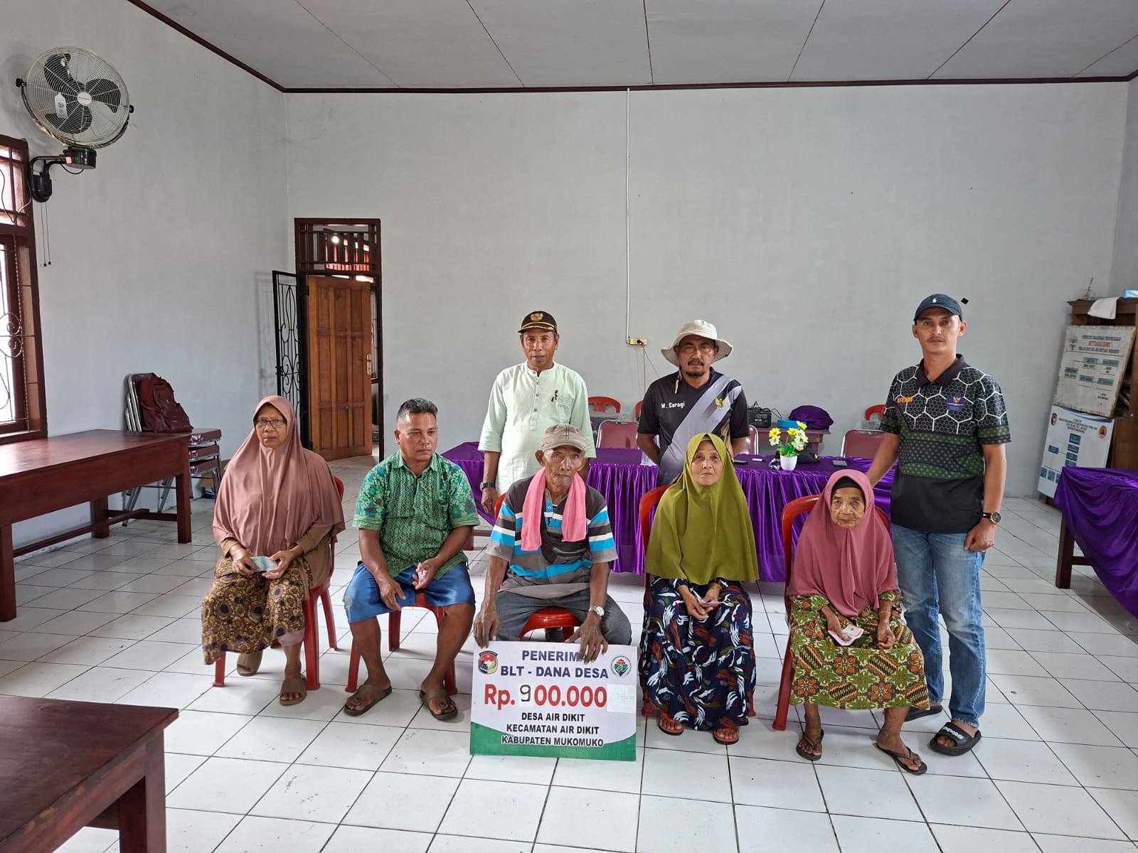 Mukomuko, Narasiberita.co.id.- Pemerintah Desa (Pemdes) Air Dikit, Kecamatan Air Dikit, menyalurkan Bantuan Langsung Tunai Dana Desa (BLT-DD) kepada 29 Keluarga Penerima Manfaat (KPM) untuk bulan Desember Tahun 2025. Penyaluran tersebut dilaksanakan pada Jumat (12/12/2025) di Aula Kantor Desa Air Dikit.