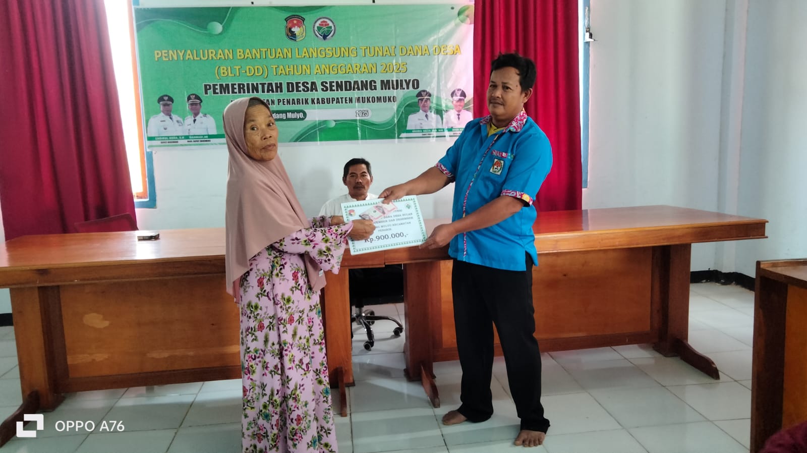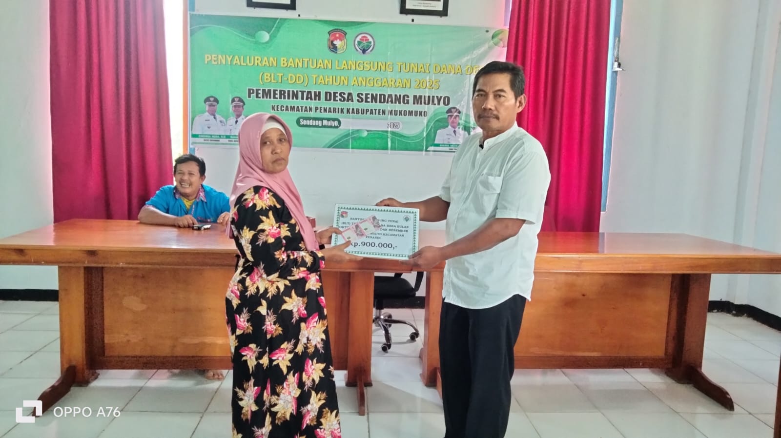 “Penyaluran BLT-DD ini kami realisasikan kepada 10 KPM. Masing-masing KPM menerima bantuan sebesar Rp900.000, karena bantuan diberikan untuk tiga bulan sekaligus, yakni Oktober, November, dan Desember, dengan nominal Rp300.000 per bulan,” jelas Noor Ali.