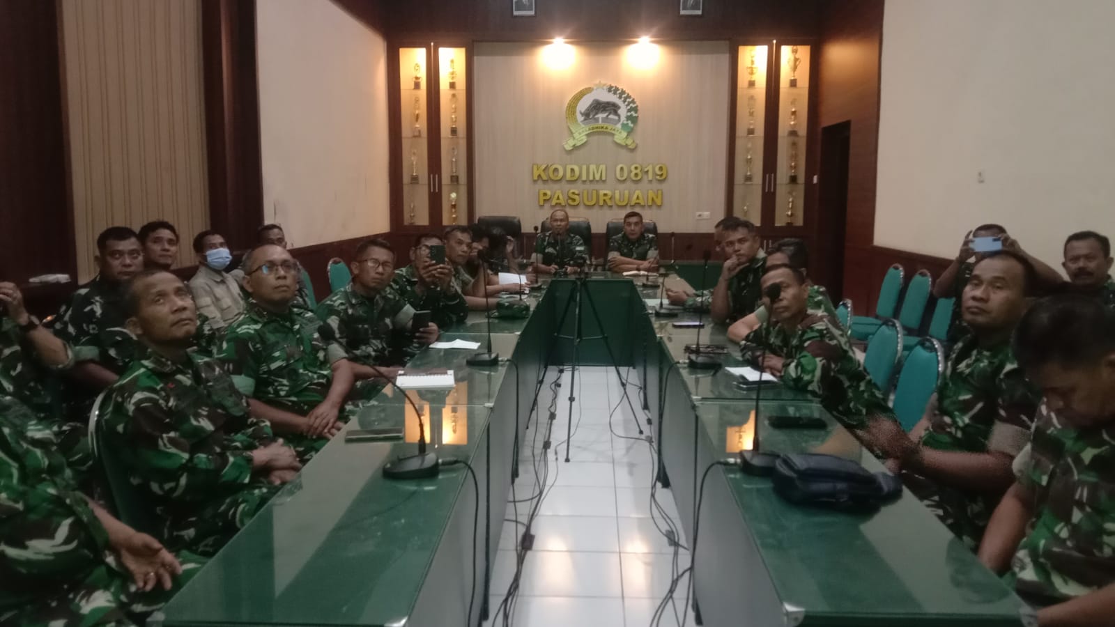 Rapat dipimpin langsung oleh Kasdim 0819/Pasuruan, Mayor Inf Sugianto, dan dihadiri oleh jajaran perwira staf serta instansi terkait guna memastikan transisi hasil pembangunan berjalan mulus.