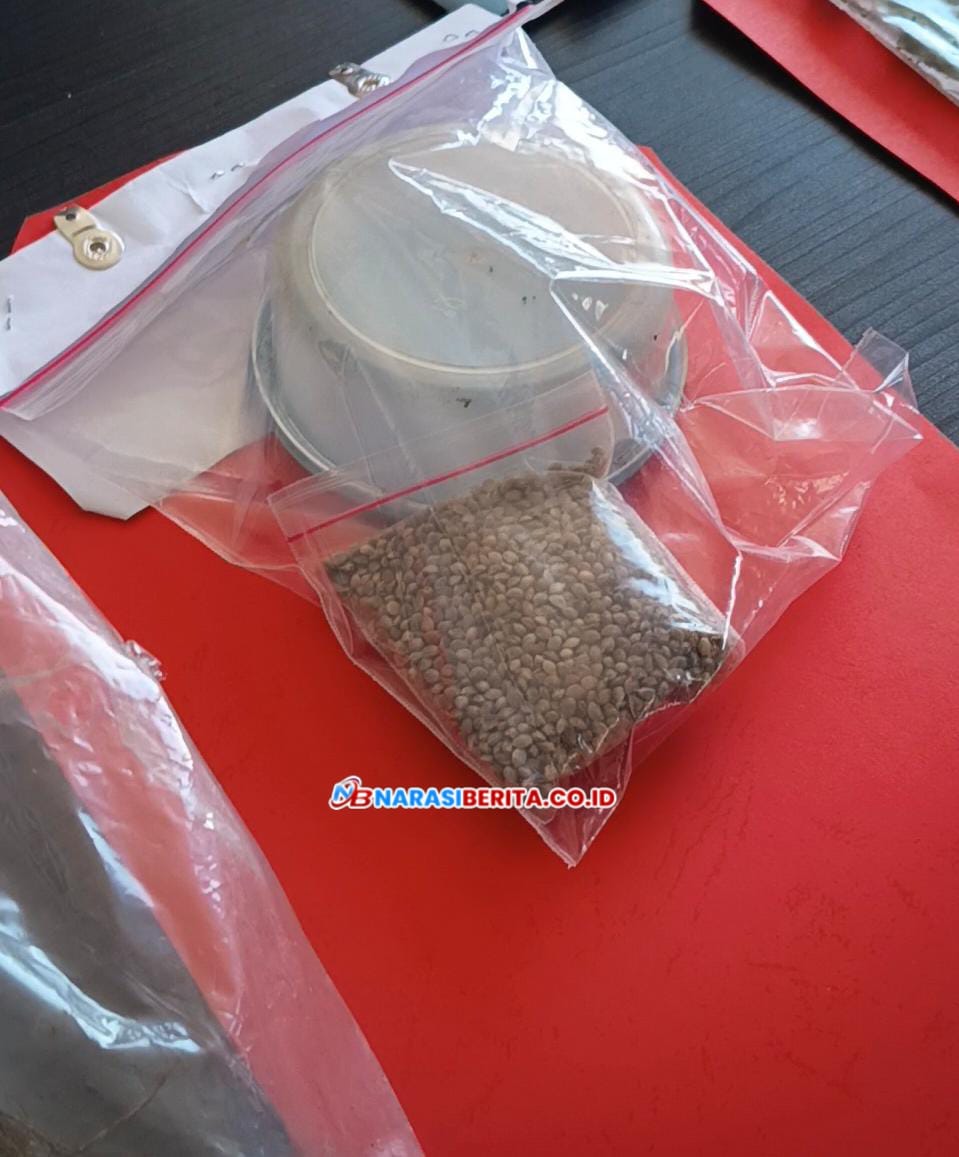 Barang bukti yang disita antara lain 139 batang tanaman ganja ukuran kecil dengan berat bersih 29,51 gram, 10 batang tanaman ganja ukuran besar dengan berat bersih 250 gram, satu kantong plastik berisi ganja kering seberat 28,07 gram, serta satu wadah berisi biji ganja dengan berat bersih 34,87 gram yang diperkirakan cukup untuk ditanam di lahan hingga satu hektar.