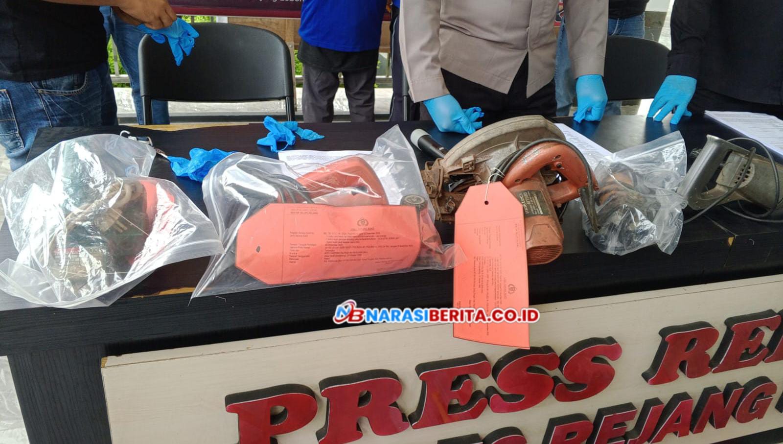 Dalam kasus ini, polisi menyita puluhan barang bukti hasil pencurian. Di antaranya mesin sugu listrik, gerinda, gergaji mesin, martil, godam, linggis, kikir, pahat, kunci pas, kunci ring, serta berbagai mesin listrik merek Makita, Mactec, dan Misaka.
