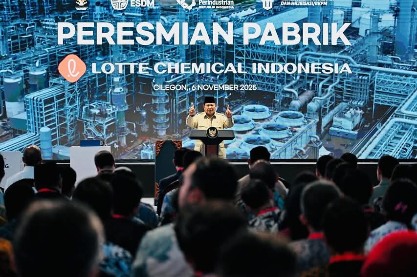 Jakarta, Narasiberita.co.id.- Presiden Prabowo Subianto meresmikan pabrik Lotte Chemical Indonesia (LCI) di Kota Cilegon, Provinsi Banten, Kamis (06/11/2025).