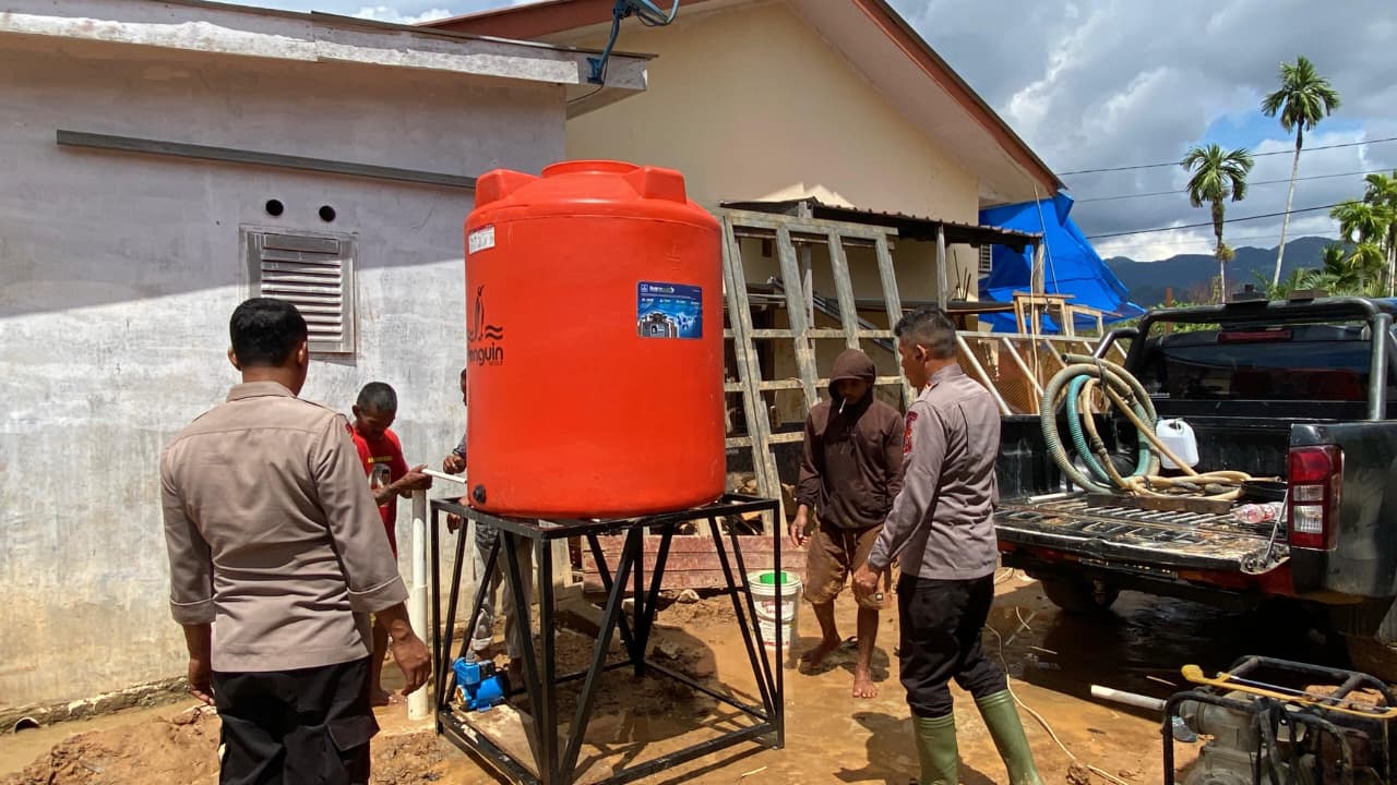 Pulihkan Kehidupan Pascabanjir, Brimob Batalyon C Bersinergi Bangun Air Bersih dan Fasilitas Warga di Batang Toru