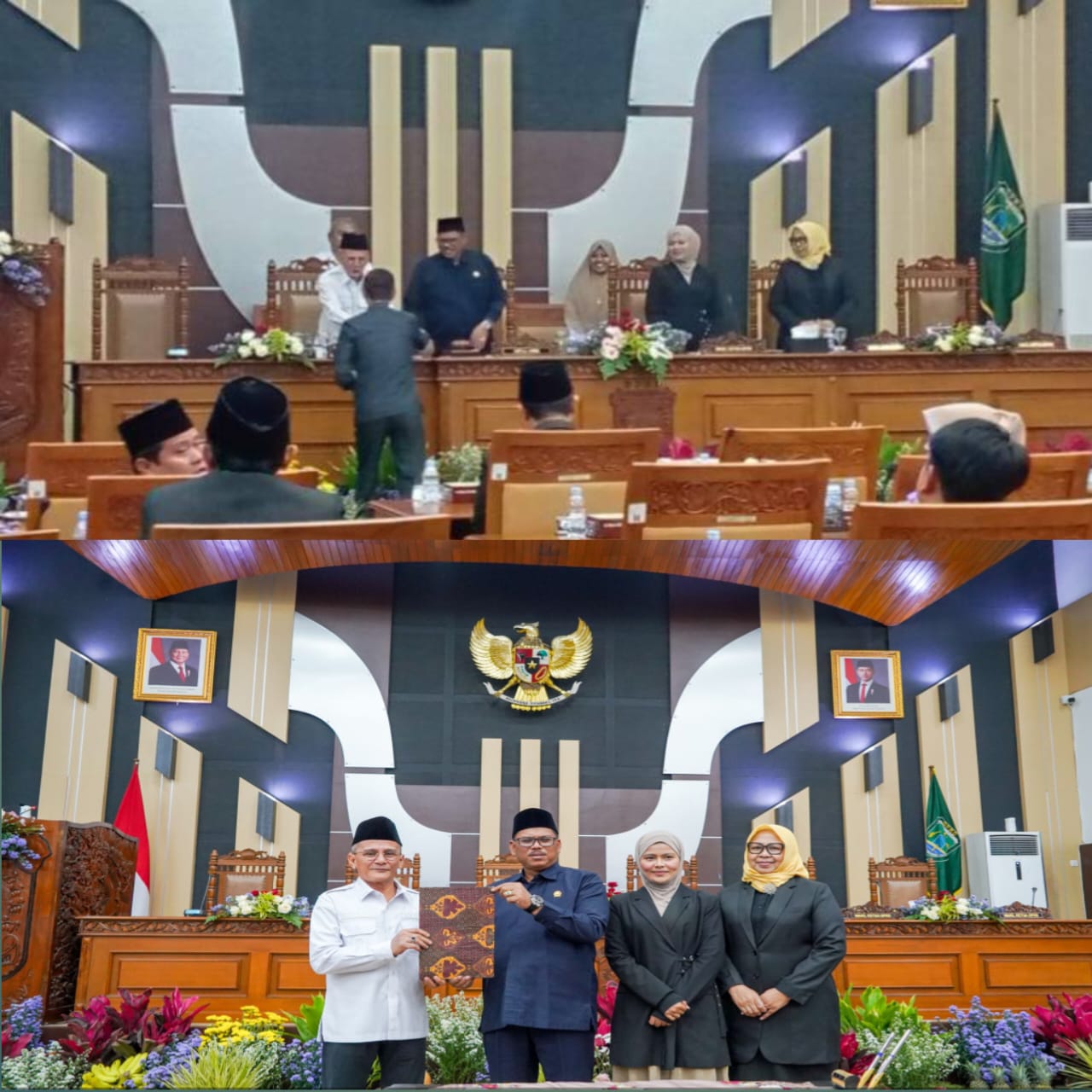 Sidang Paripurna ditutup dengan penyerahan dokumen rekomendasi secara simbolis dari Pimpinan DPRD kepada Wakil Bupati Pasuruan, yang menandai berakhirnya rangkaian evaluasi LKPJ TA 2025. (Eka)