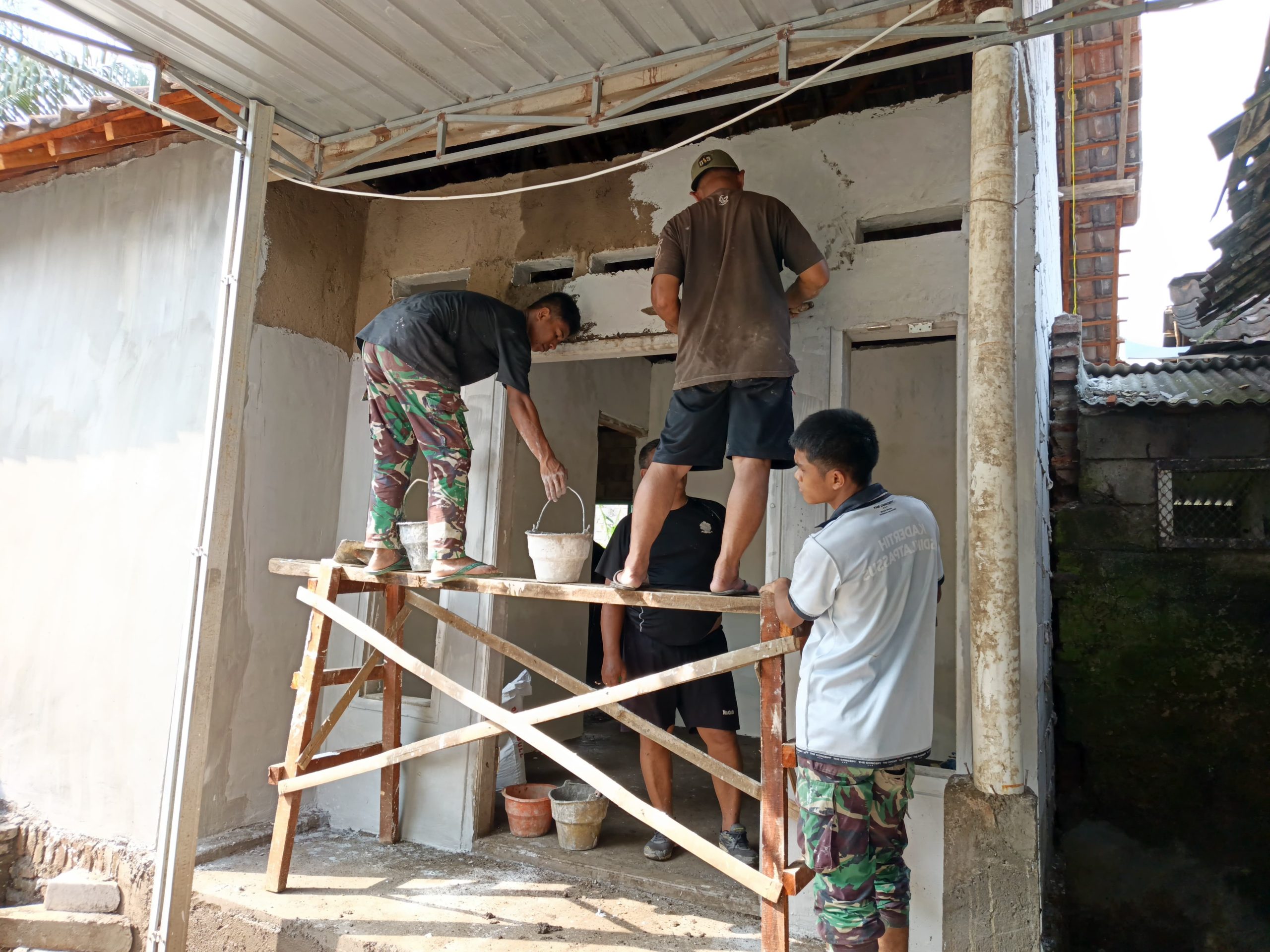 “Pekerjaan plesteran ini kami lakukan bahu-membahu. Ketelitian menjadi kunci agar hasilnya rapi dan kuat. Kami ingin rumah Bapak Yusron segera rampung sehingga keluarga beliau bisa menempatinya dengan lebih layak dan nyaman secepat mungkin,” ujar Serda Hendriawan.