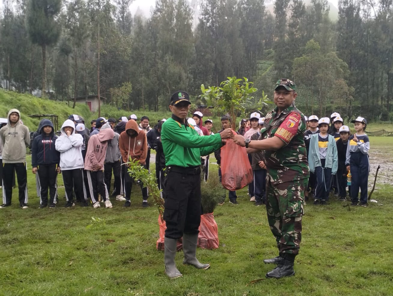 Turut hadir dalam kegiatan tersebut, Kepala Desa Mororejo Bapak Ngatoyo, Asper Tosari Bapak Amir, Kepala SMPN 3 Tosari Ibu Novi, serta peserta penghijauan yang terdiri dari unsur TNI, perangkat desa, pelajar, dan masyarakat setempat.