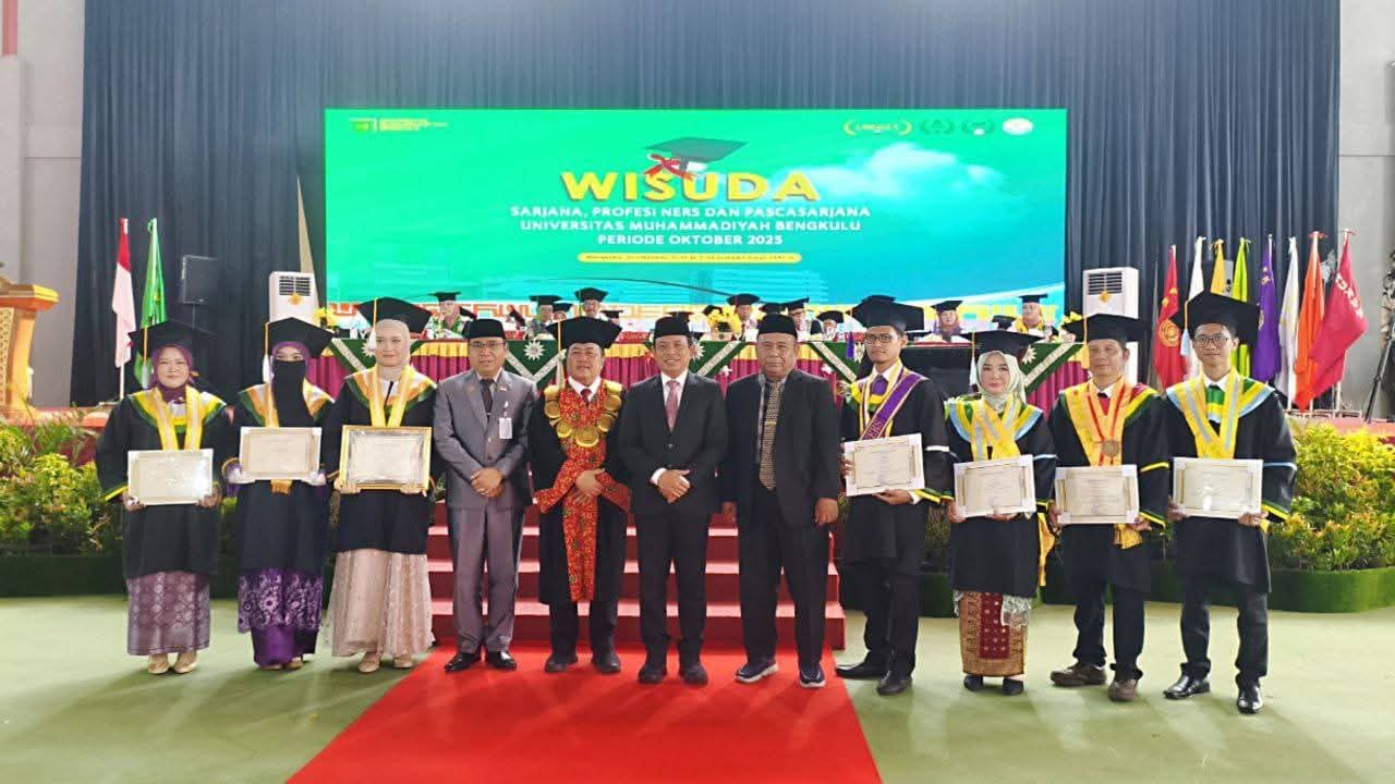 Bengkulu, Narasiberita.co.id.- Walikota Bengkulu Dedy Wahyudi menghadiri acara Wisuda Universitas Muhammadiyah Bengkulu (UMB) periode Oktober 2025 yang digelar di Gedung Sportatorium Kampus IV UMB, Sabtu pagi (25/10/2025).