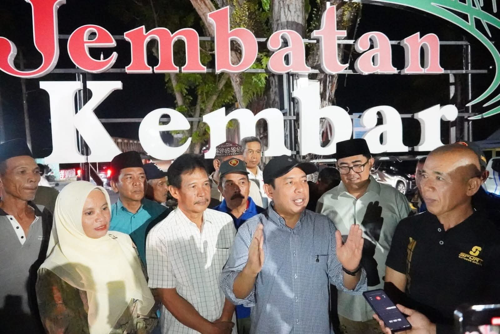 “Jembatan ini sebelumnya belum punya nama. Maka kita kasih nama jembatan kembar. Kita percantik, jembatan dan tamannya kita kasih lampu. Dan nanti saya minta kadis PUPR jangan lupa jembatan ini dikasih jaring besi, mungkin di tahun 2026 nanti perlu diberi jaring besi di sisi kiri dan kanan jembatan agar tidak ada lagi pengendara yang melempar sampah ke dalam sungai,” kata Dedy.